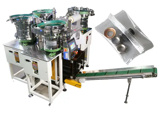Fastener Counting Packaging Machine With 6 Vibrating Bowl Feeders