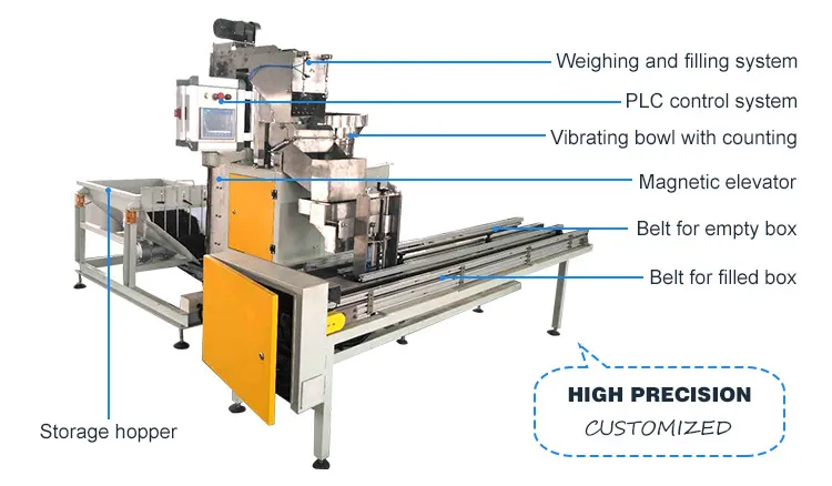 Nail Box Packing Machine is a type of packaging machinery used to automatically pack products into boxes or cartons. The machine is designed to handle various box sizes and shapes and can be customized to meet specific packaging requirements.